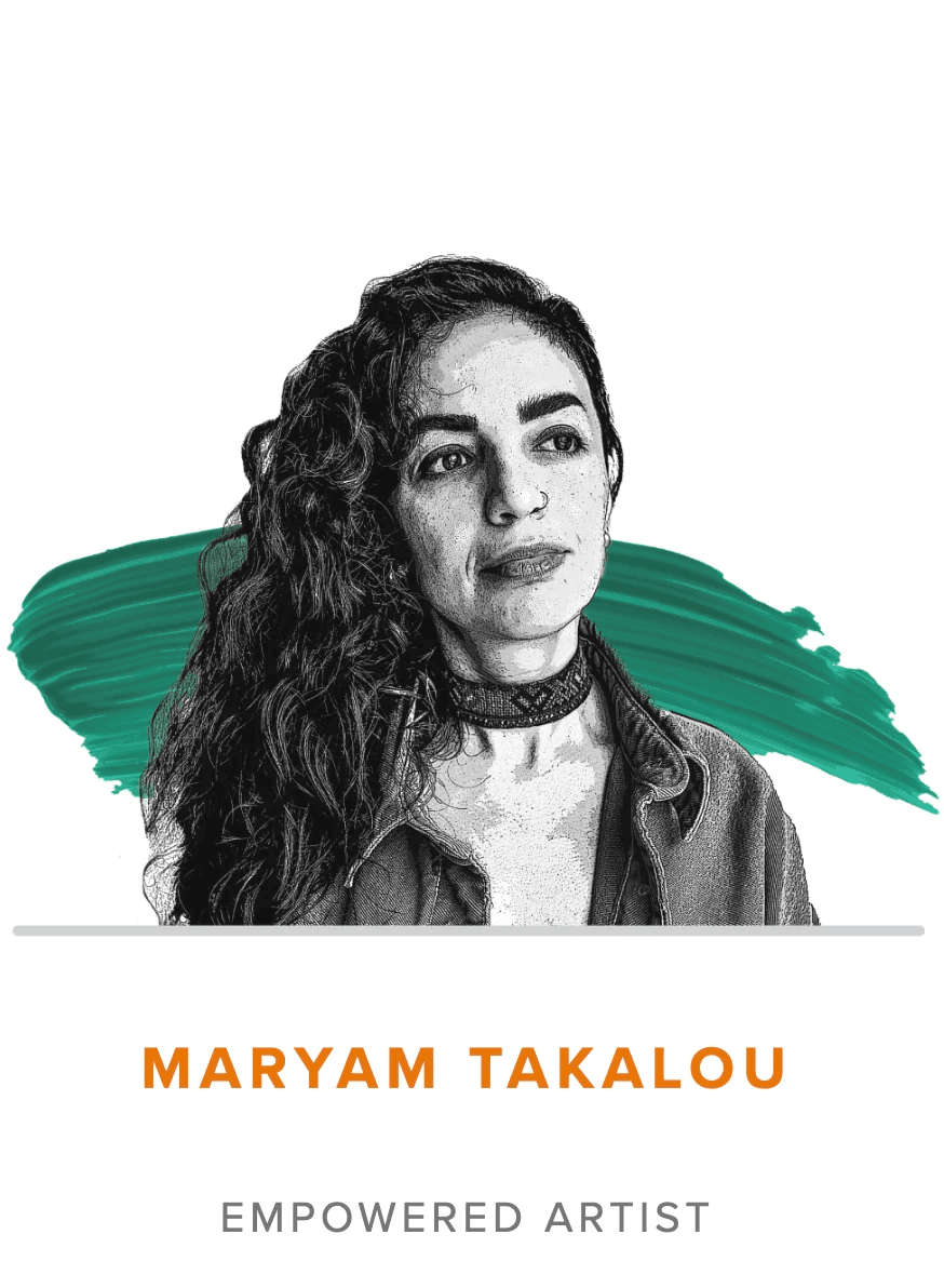 Takalou earned her MFA in Studio Art from Florida State University in 2022 and is currently a Ph.D. candidate in Visual and Performing Arts at the University of Texas at Dallas, where she teaches courses on visual arts. In 2010, Maryam received first prize for drawing at the Afarinesh Festival at the University of Tehran and the Art Youth Festival at the Tehran Museum of Contemporary Art. She also received the Florida State University Scholarship Award (2019), the Andy McLachlin Memorial Award (2021–2022) for exceptional artistic achievement, the Mary Ola Miller Reynolds Award (2021) for outstanding contributions to studio art, multiple Artistic Materials Fund Awards (2019–2022), the Harry W. Bass Jr. Graduate Research and Travel Award (2023 and 2024), and the Robert Plant Armstrong Endowed Scholarship Fund (2024 and 2025). She was awarded the Mala and Adolph Einspruch Fellowship for Holocaust Studies, the Selwin Belofsky Fellowship in Holocaust Studies, and the Mike Jacobs Fellowship in Holocaust Studies in April 2025.